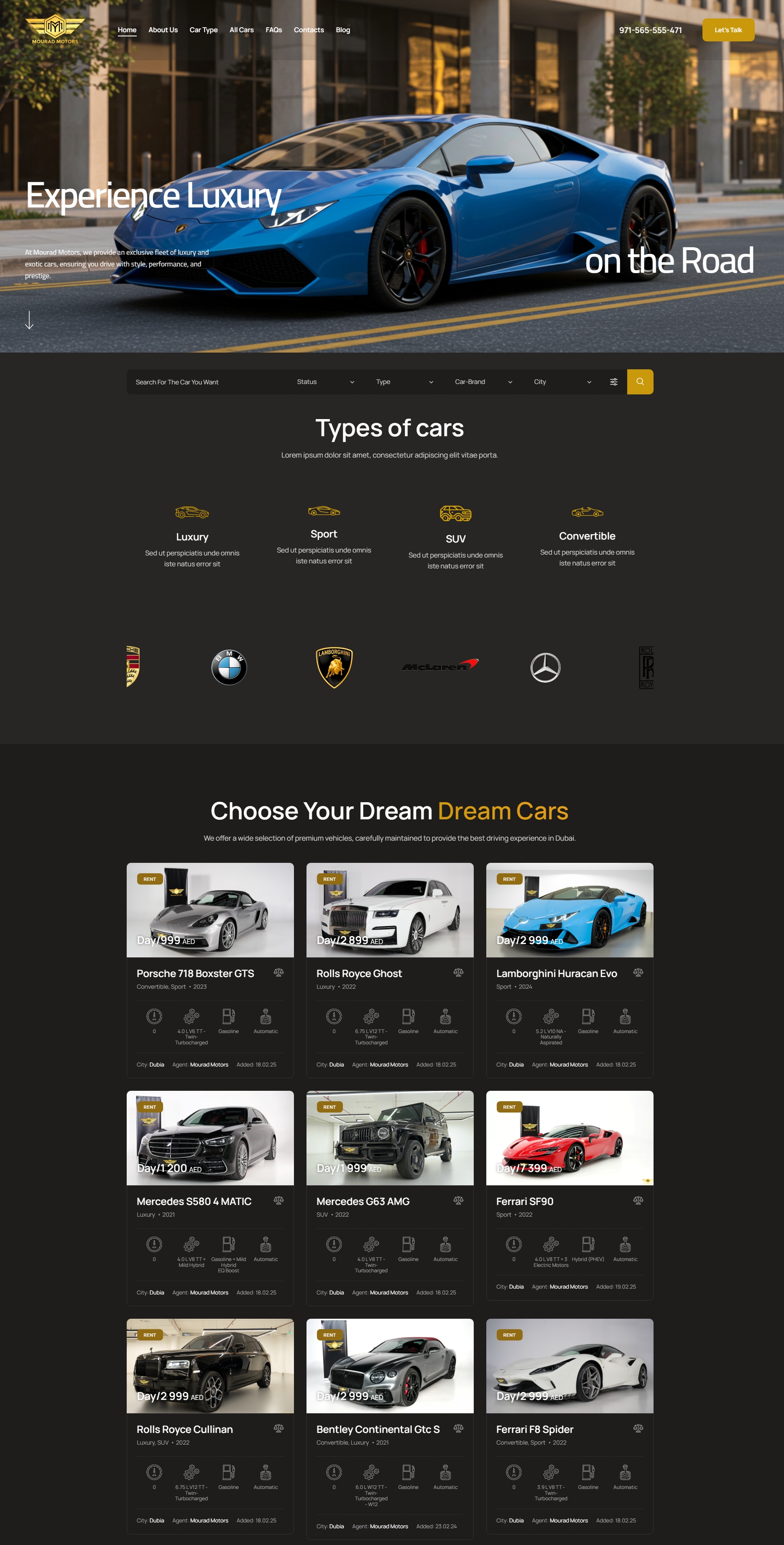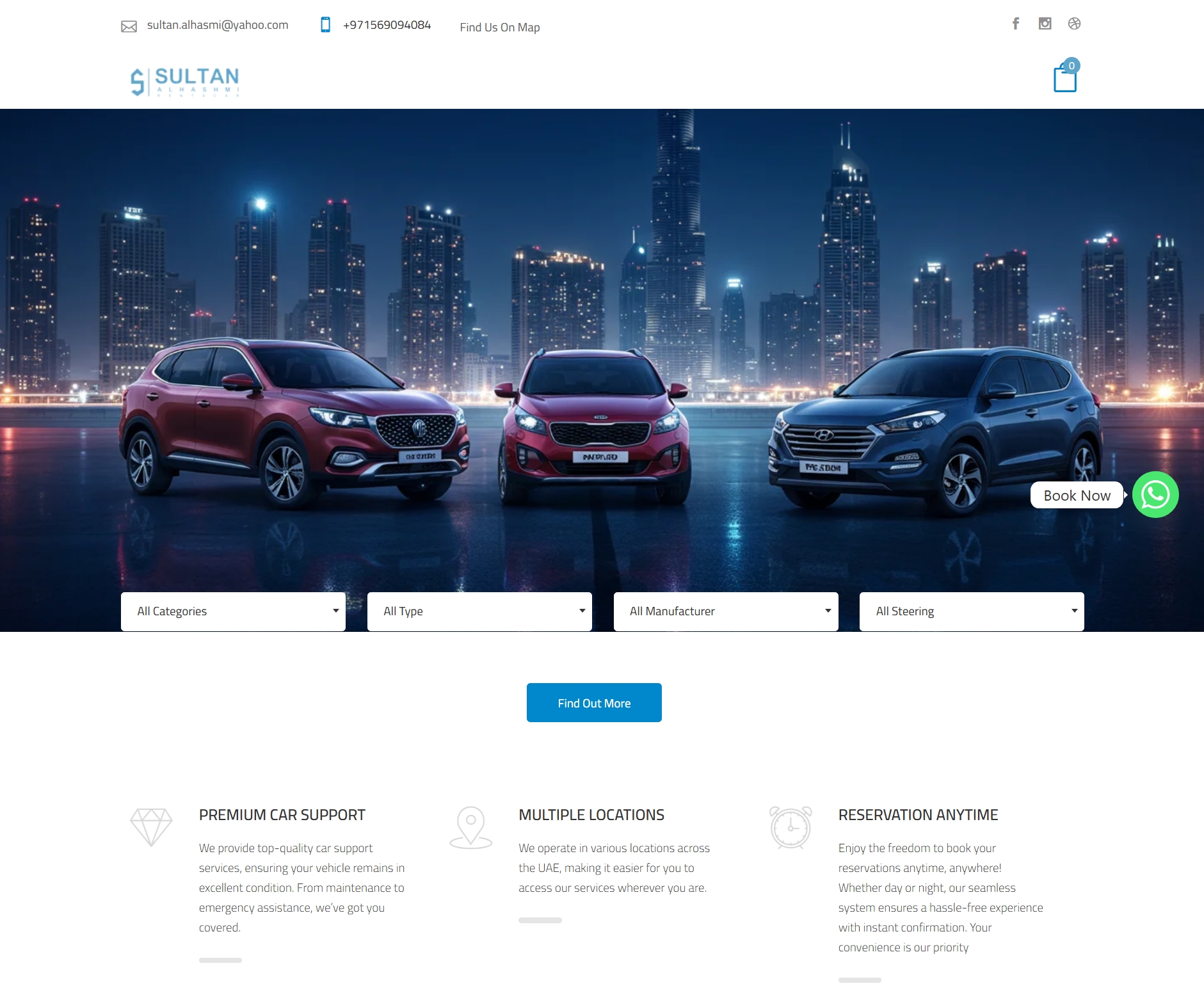 UAE car rental marketplace with advanced filters, dynamic pricing (daily/weekly/monthly), and WhatsApp integration. WordPress + WooCommerce with 20+ vehicles. 95+ performance score with UAE-localized SEO.
