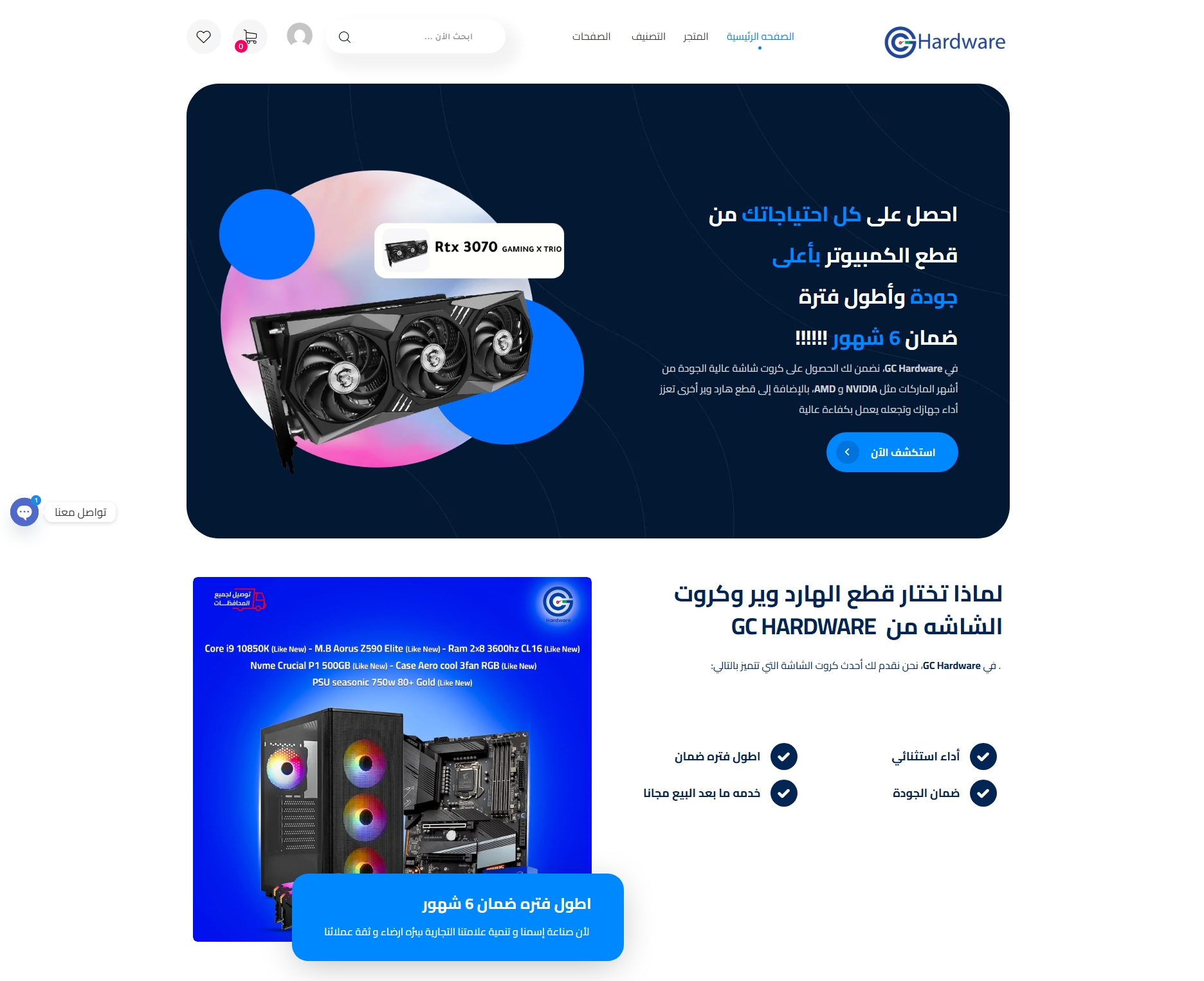 Arabic PC hardware e-commerce platform. WordPress + WooCommerce specializing in graphics cards, PC builds, monitors. Implemented 6-month warranty system, advanced categories, RTL/Arabic support. 95+ performance score with cart/wishlist integration.