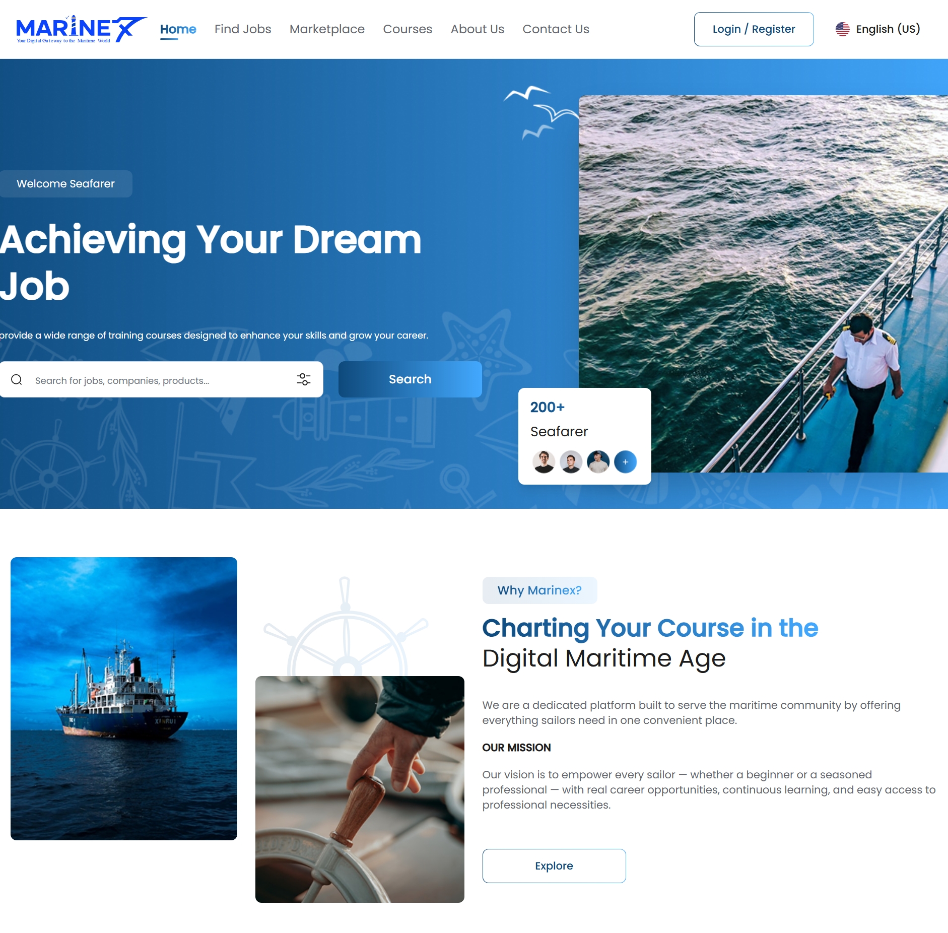 Maritime jobs/courses marketplace using Nuxt.js + Vue.js SSR. Features job listings (Staff Captain, Safety Officer), online courses, marketplace with search, auth system, and multi-language support. 95+ performance score optimized for seafarers.