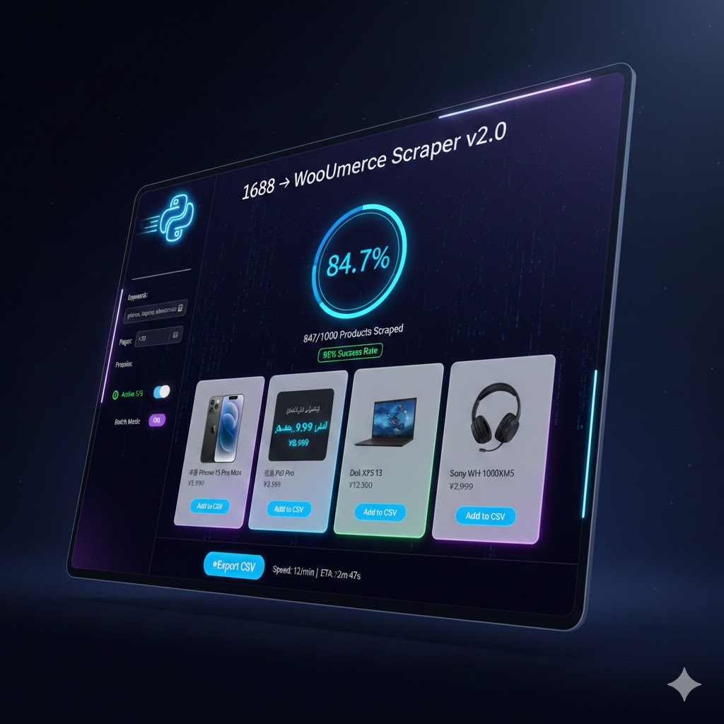 🛍️ Python scraper for 1688.com → WooCommerce CSV export. No API needed. GUI + Batch processing for seamless product integration.